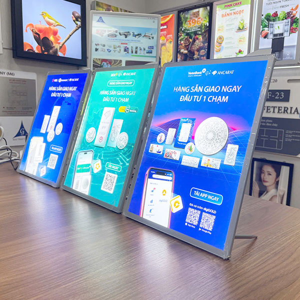 + Hình ảnh quảng cáo được tôn vinh tối đa, dễ dàng thu hút ánh nhìn và tăng độ nhận diện thương hiệu tại điểm bán hàng, trung tâm thương mại, showroom hay nhà hàng.