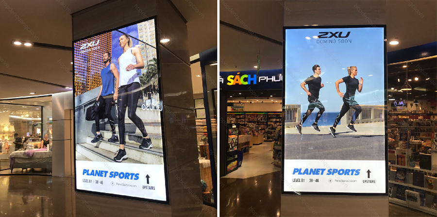 - Hộp đèn có thiết kế siêu mỏng, độ dày chỉ bằng 1/4 so với hộp đèn truyền thống (chỉ có 1.8cm) giúp tiết kiệm được diện tích không gian. Hộp đèn nắp hít có thiết kế tương tự như một màn hình LCD IPS LED tạo cảm giác sang trọng, đẳng cấp cho cửa hàng.