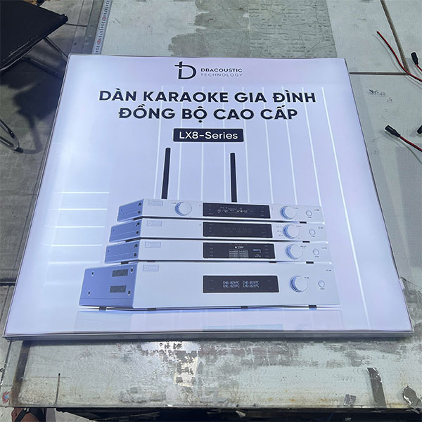 + Khung hộp đèn làm từ nhôm định hình cao cấp, tích hợp hệ thống LED tiết kiệm điện và tấm dẫn sáng chất lượng cao, đảm bảo ánh sáng tỏa đều, không chói lóa.