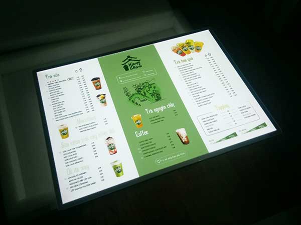 Nhà hàng, quán cà phê: Hiển thị menu, bảng giá một cách chuyên nghiệp.